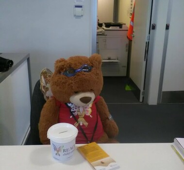 During September Eddie bear will be visiting businesses for a day and spreading awareness of child cancer and REACH child cancer's fundraising efforts to fund child cancer research . He had a lot of fun at Kindercare Rangiora and was so worn out that he even had an afternoon nap.